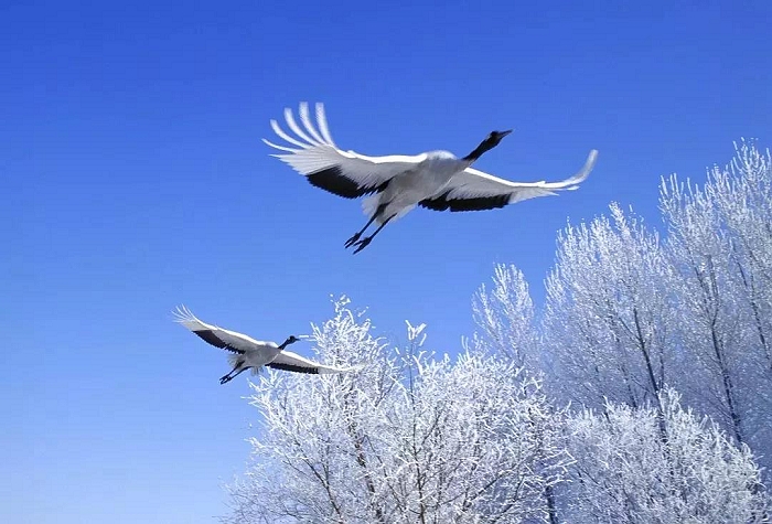 世界唯一的丹顶鹤冰雪栖息