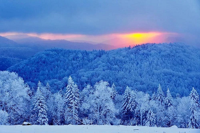 中国面积最大的冰雪红松林